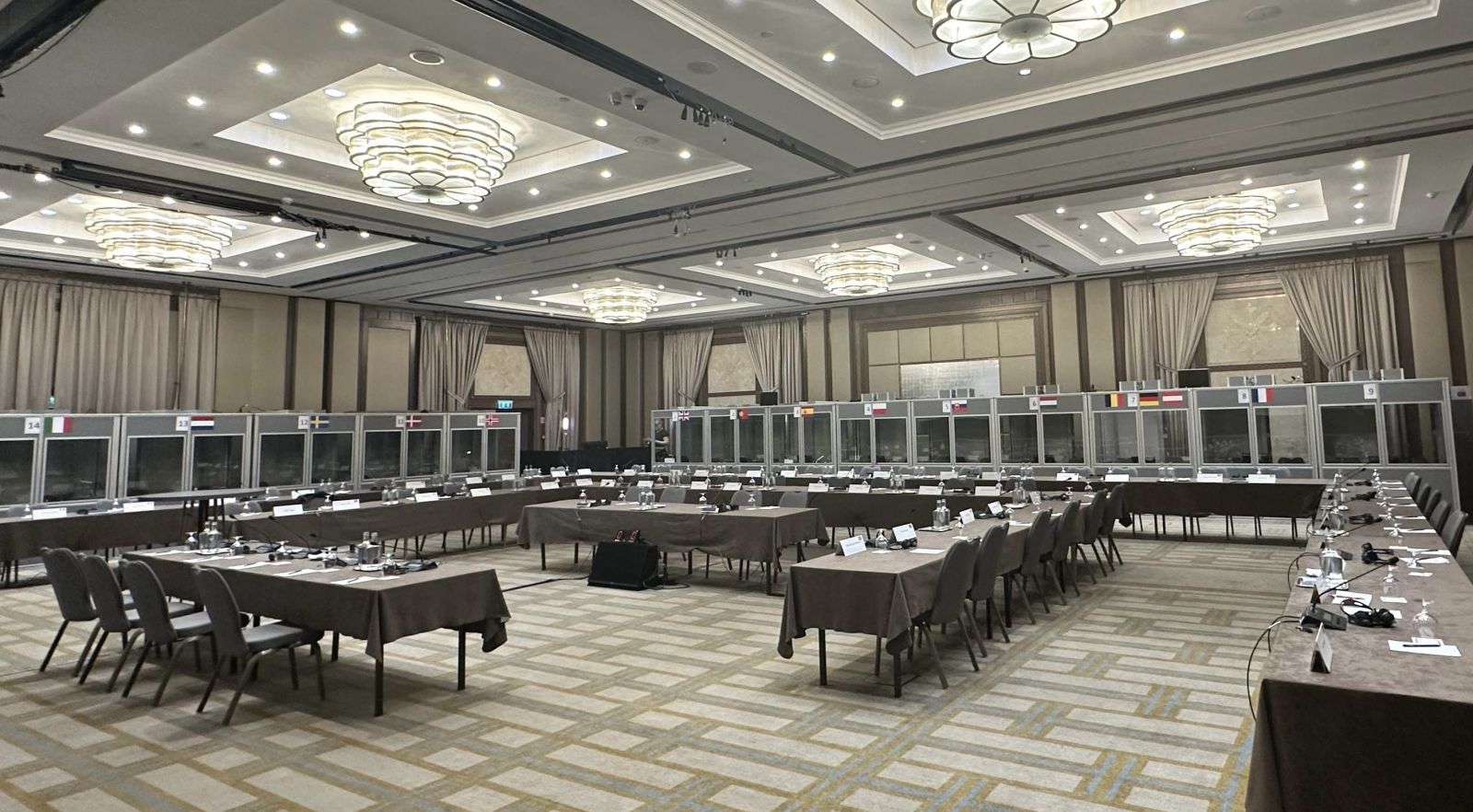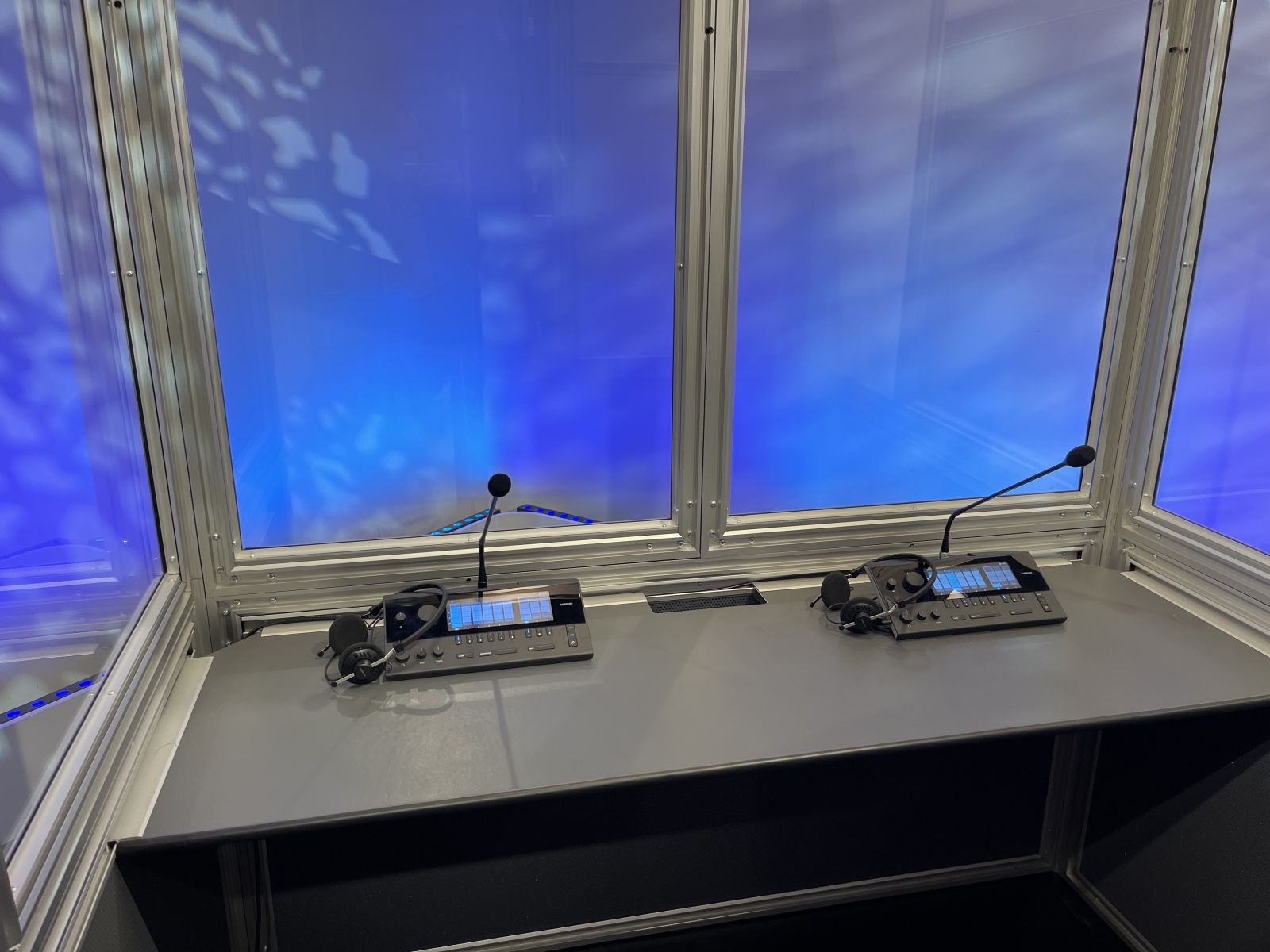 Voor internationale meetings heeft de NFGD ook de beschikking over 14 tolkenposten met cabines. In elke geluiddichte cabine is plek voor twee tolken, zodat ze elkaar kunnen aflossen. De tolkencabines worden aangesloten op het Televic-vergadersysteem. Elke deelnemer kan kiezen om de simultaan-vertaling te beluisteren door een koptelefoon in te pluggen in de eigen unit. De deelnemers kan zelf kiezen voor de taal die hij/zij wil beluisteren.