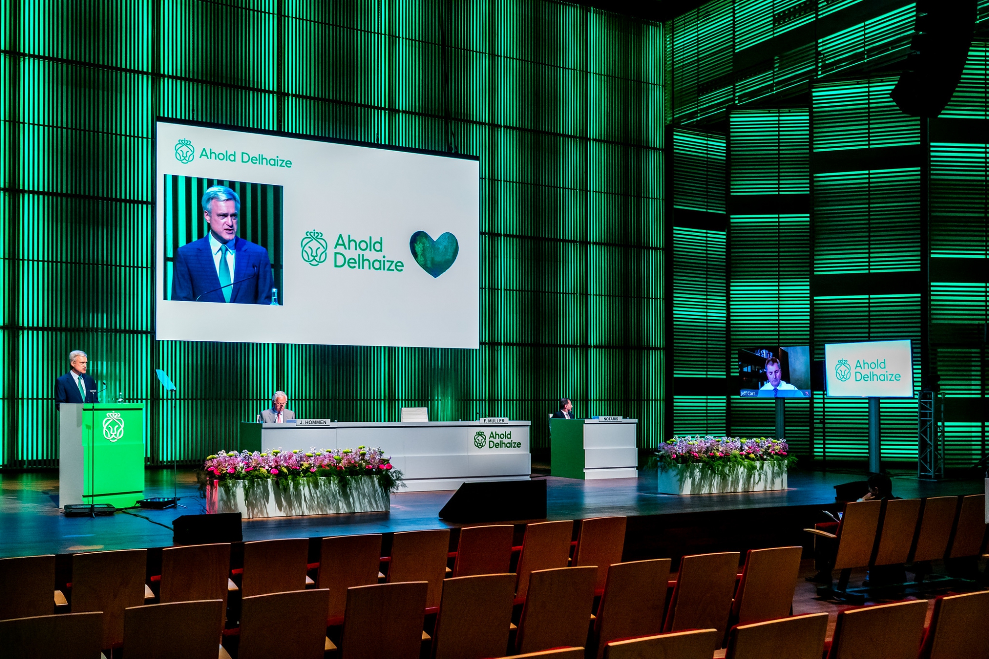 Voor Ahold Delhaize mochten wij meedenken naar een oplossing om hun AVA toch door te kunnen laten gaan. We hebben samen met Ahold Delhaize gekozen voor het Barco WeConnect systeem, waarmee boardmembers virtueel konden inbellen met een interactieve beeldverbinding.