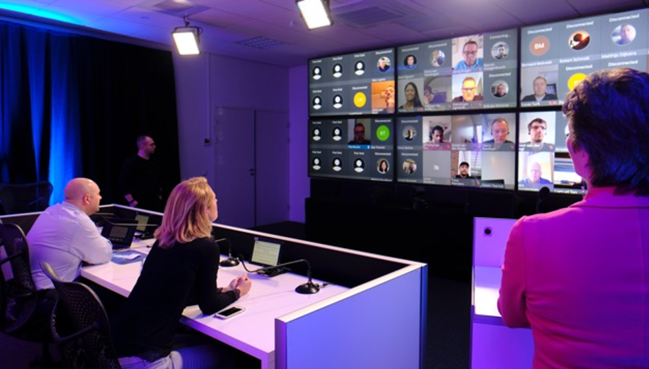 Onderling overleg met thuiswerkenden, een pitch voor een nieuwe klant, een aandeelhoudersvergadering, alles op veilige afstand.