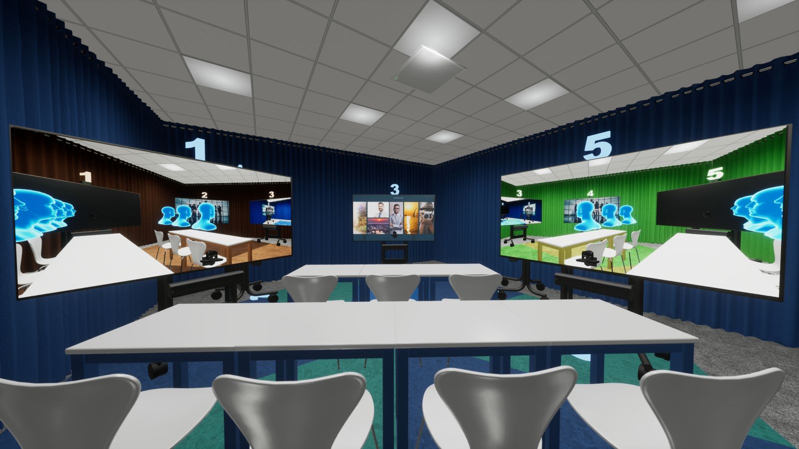 De AV-techniek die ons destijds heeft geholpen is de basis van De Virtuele Campus, maar vroeg om verbetering. In de deels virtuele les wilden we leerlingen en leraar met elkaar verbinden met de beleving van een echt lokaal, dus alsof ze in één ruimte zitten. En dat is gelukt.