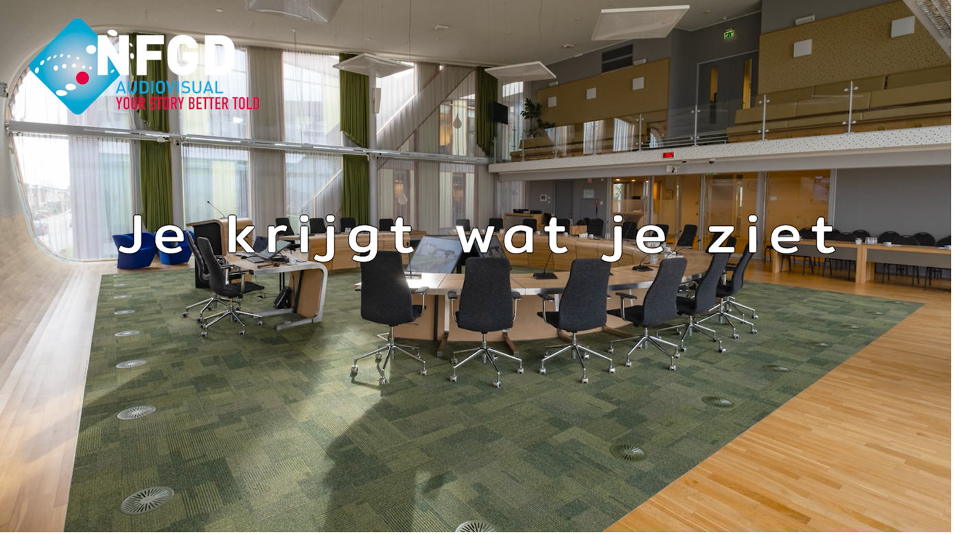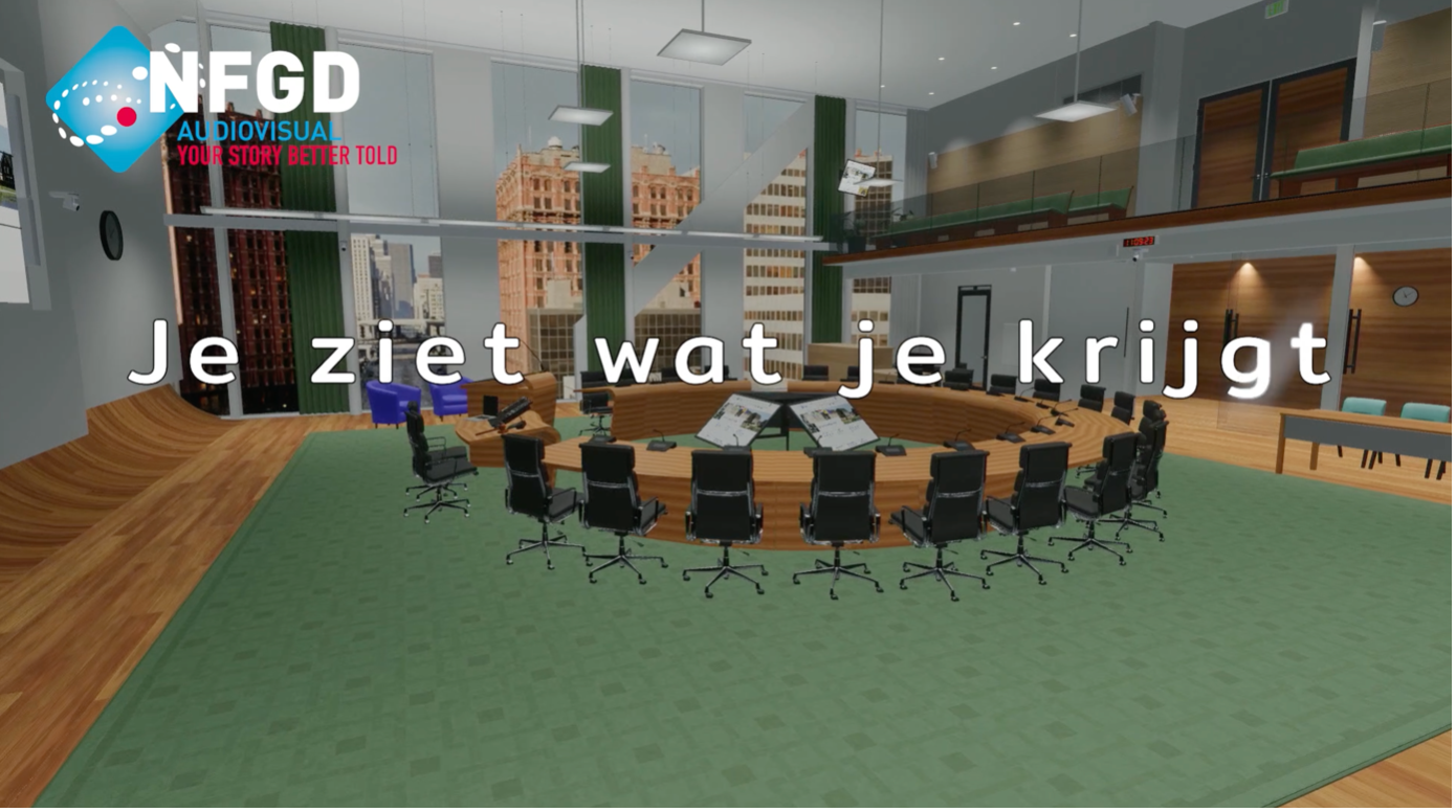 Voordat we starten met de installatie van AV-apparatuur, maakt de NFGD een Virtual Reality (VR) ontwerp van elke ruimte waarin Audio Visuele ondersteuning nodig is. Denk hierbij aan Raadzalen van gemeentes, Statenzalen van provincies of de vergaderzalen van de Eerste en Tweede Kamer. Maar ook van de inrichting van elke andere grote of kleine(re) vergaderruimte, boardroom of auditorium kunnen we eerst een virtueel ontwerp maken. Dat maakt de plannen concreet.